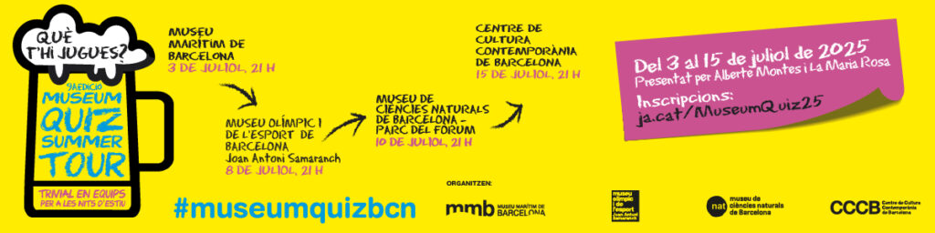 El proper 8 de juliol de 2025, el Museu Olímpic i de l’Esport acollirà la quarta ronda del Museu Quiz Summer Tour 2025. Aquesta és la tercera vegada que el Museu Olímpic participa en aquest projecte, que celebra la seva 9a edició i que està organitzat pel Museu d’Arqueologia de Catalunya, el Jardí Botànic de Barcelona, el Museu Marítim de Barcelona, el Museu Olímpic i de l’Esport i el Centre de Cultura Contemporània de Barcelona.